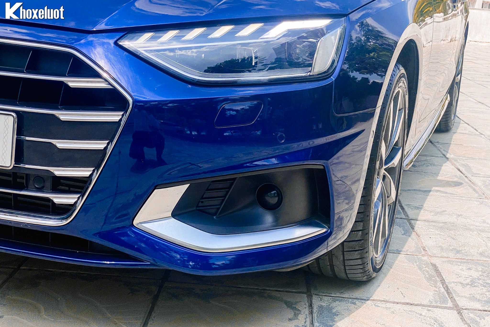 Phần đầu xe nổi bật với lưới tản nhiệt khung đơn hình lục giác, kết hợp cùng logo "bốn vòng tròn" ở trung tâm. Cụm đèn pha LED Matrix sắc sảo, tích hợp dải đèn LED định vị ban ngày với đồ họa độc đáo, mang lại khả năng chiếu sáng vượt trội và vẻ ngoài cuốn hút.
