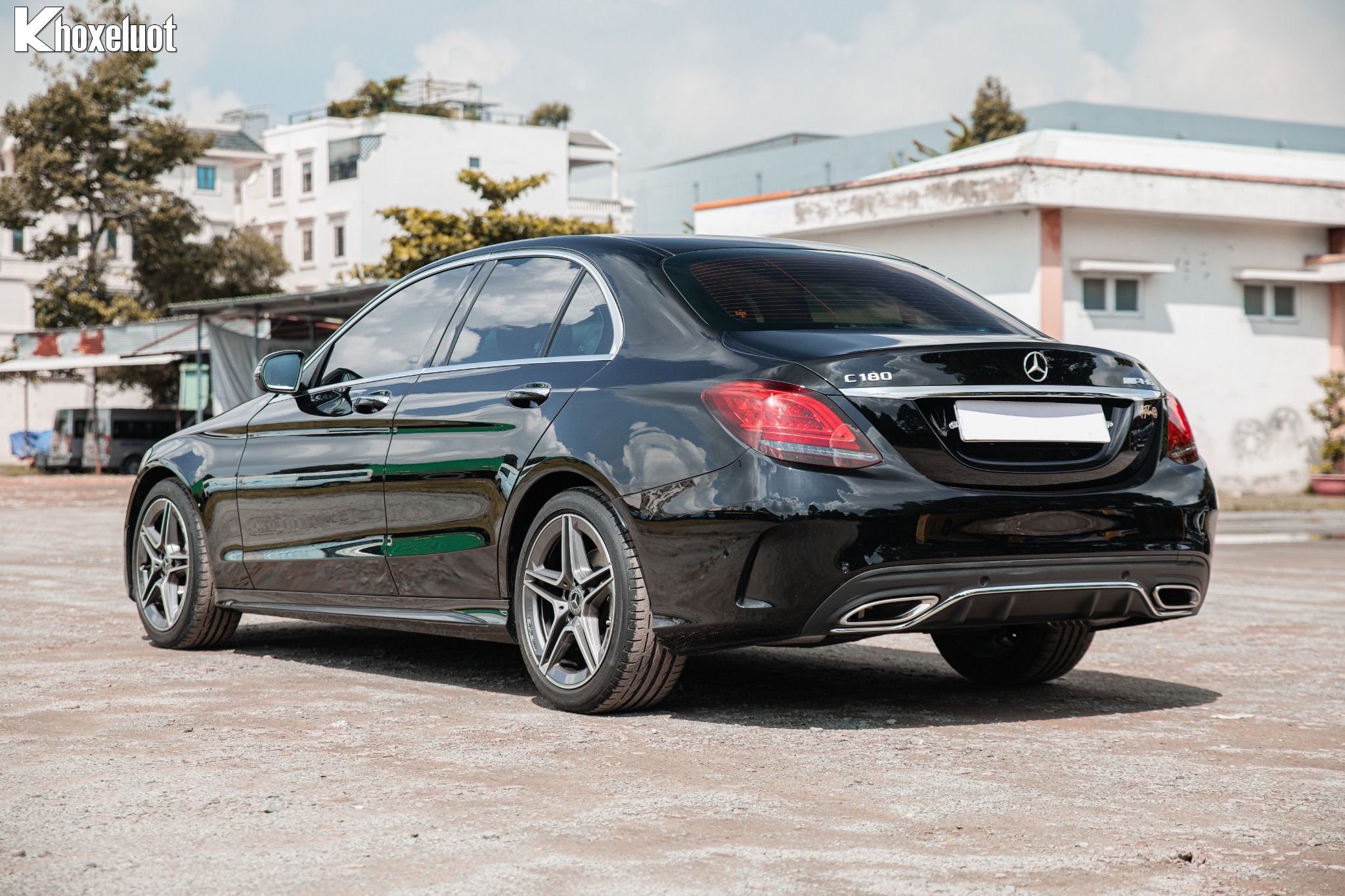 Mẫu xe sở hữu đường nét thân xe mượt mà, kết hợp với các chi tiết ốp sườn AMG thể thao, tạo cảm giác xe mạnh mẽ và năng động.