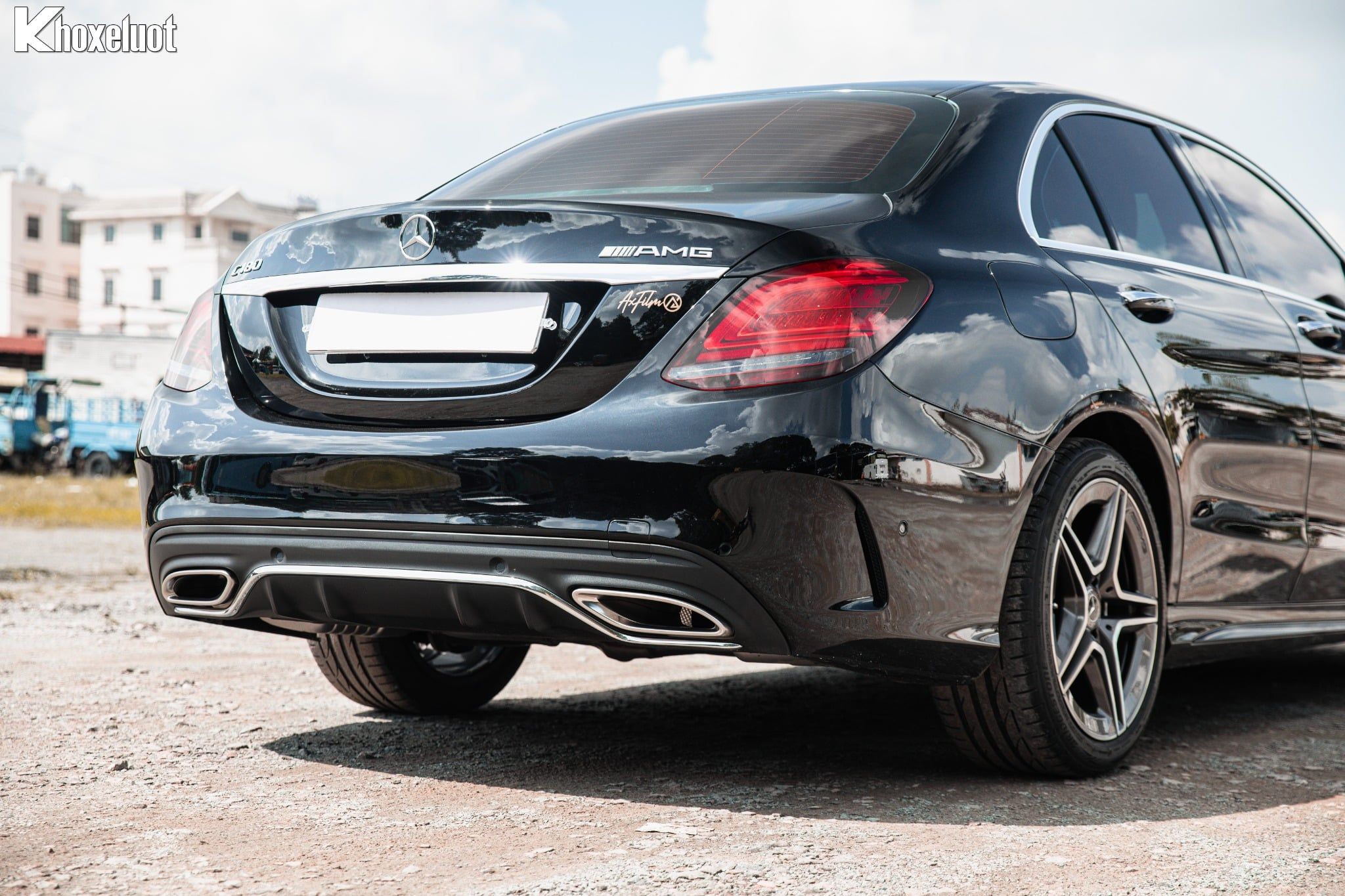 Cụm đèn hậu LED đồ họa sắc nét và cản sau thể thao AMG tích hợp bộ khuếch tán gió. Điểm nhấn là cặp ống xả mạ chrome hoàn thiện phong cách thể thao của chiếc xe.