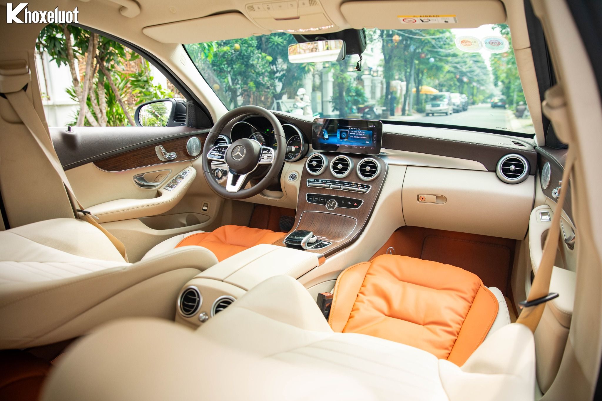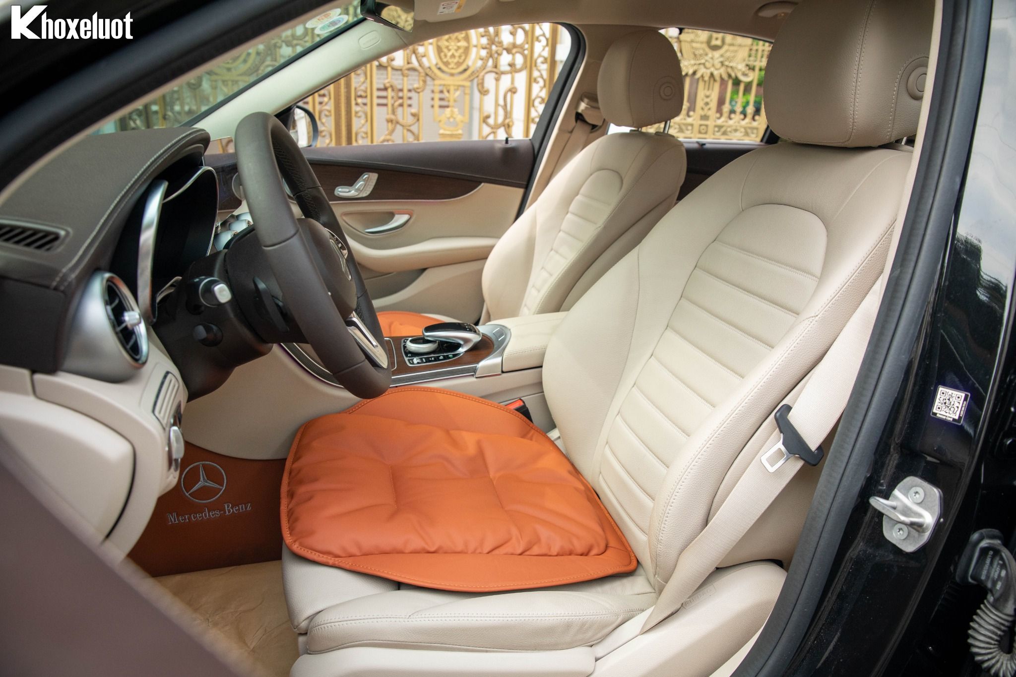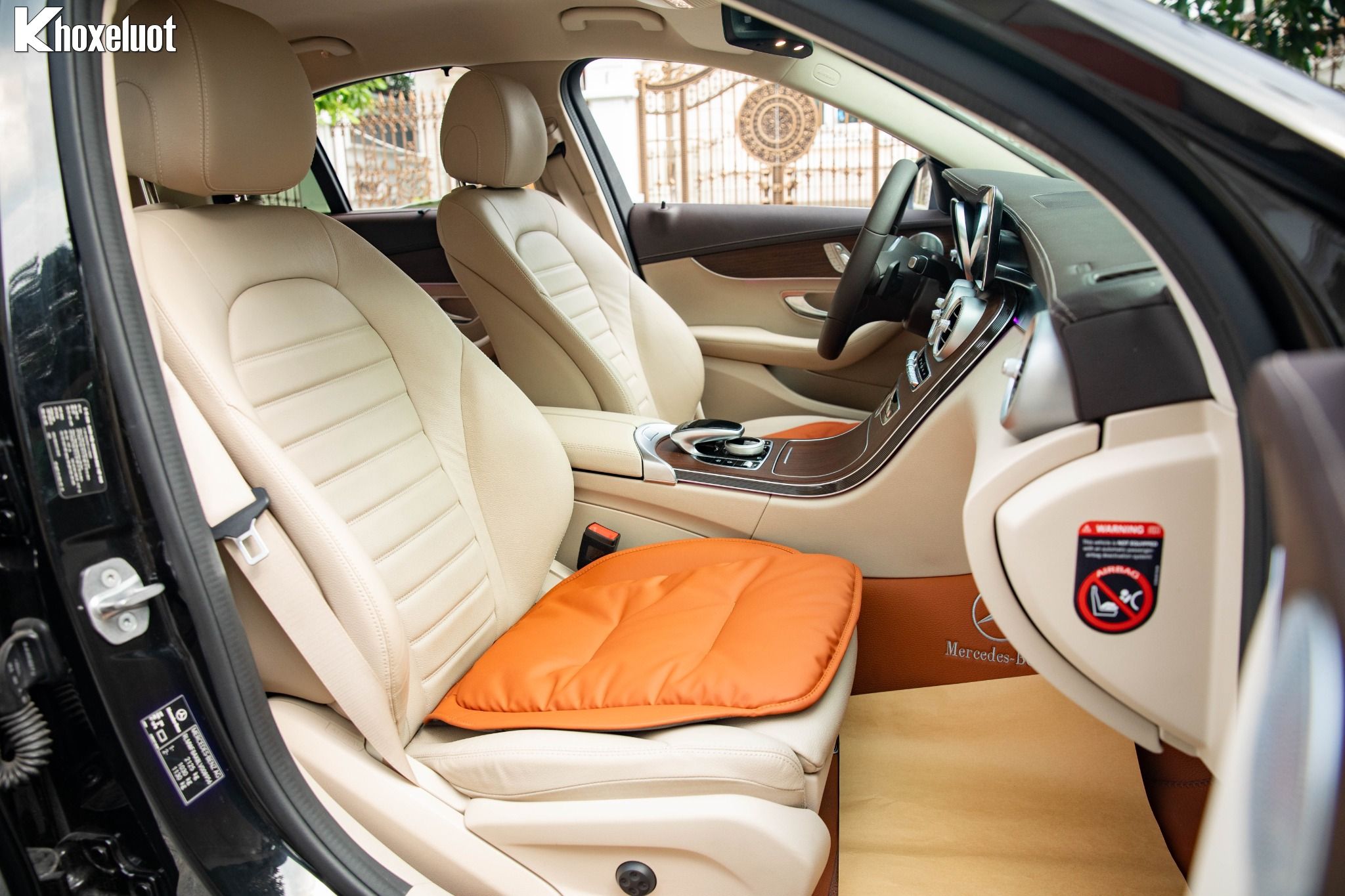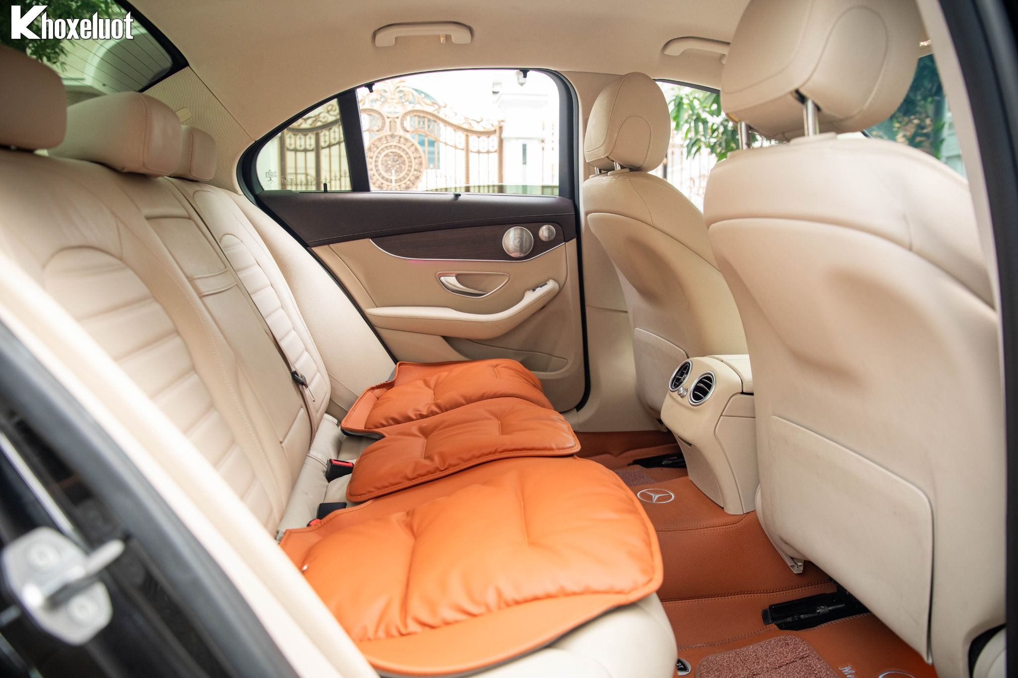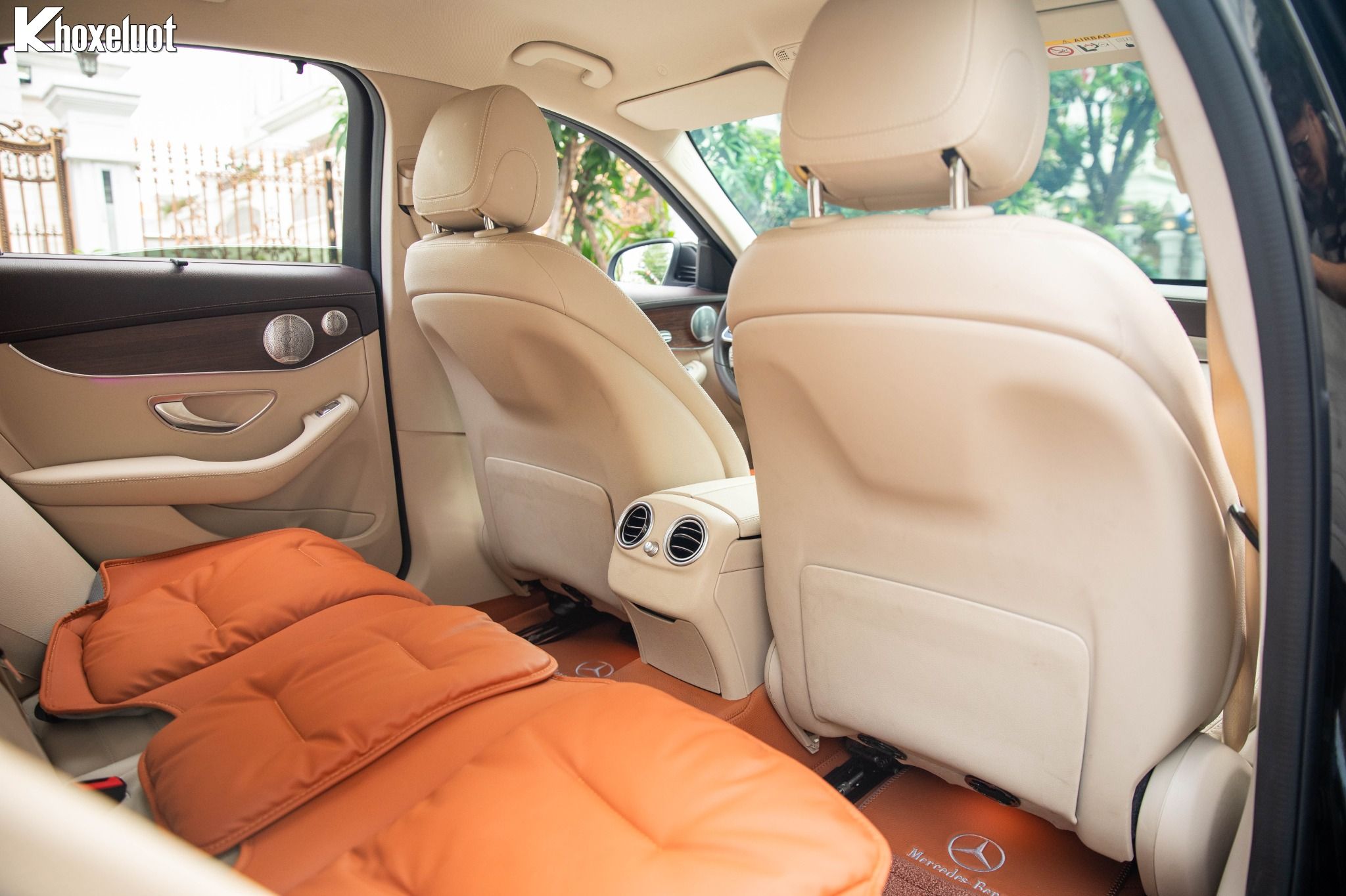 ✨ Mặt táp-lô & và thành cửa bọc da ARTICO cao cấp, ốp bệ cửa phát sáng với dòng chữ “Mercedes-Benz”.