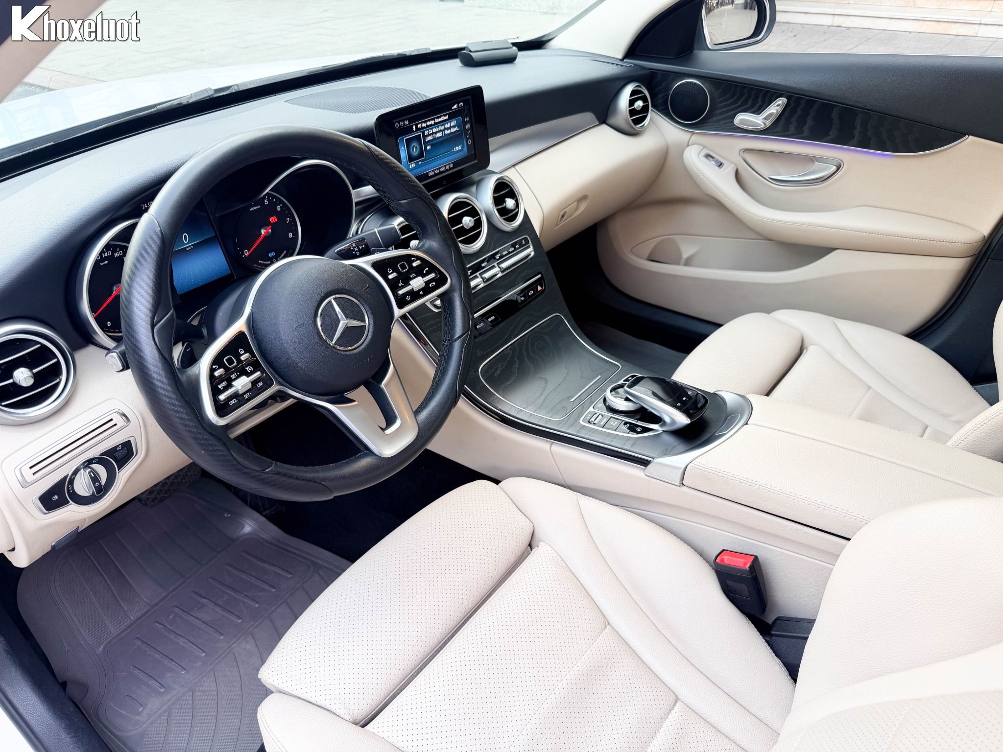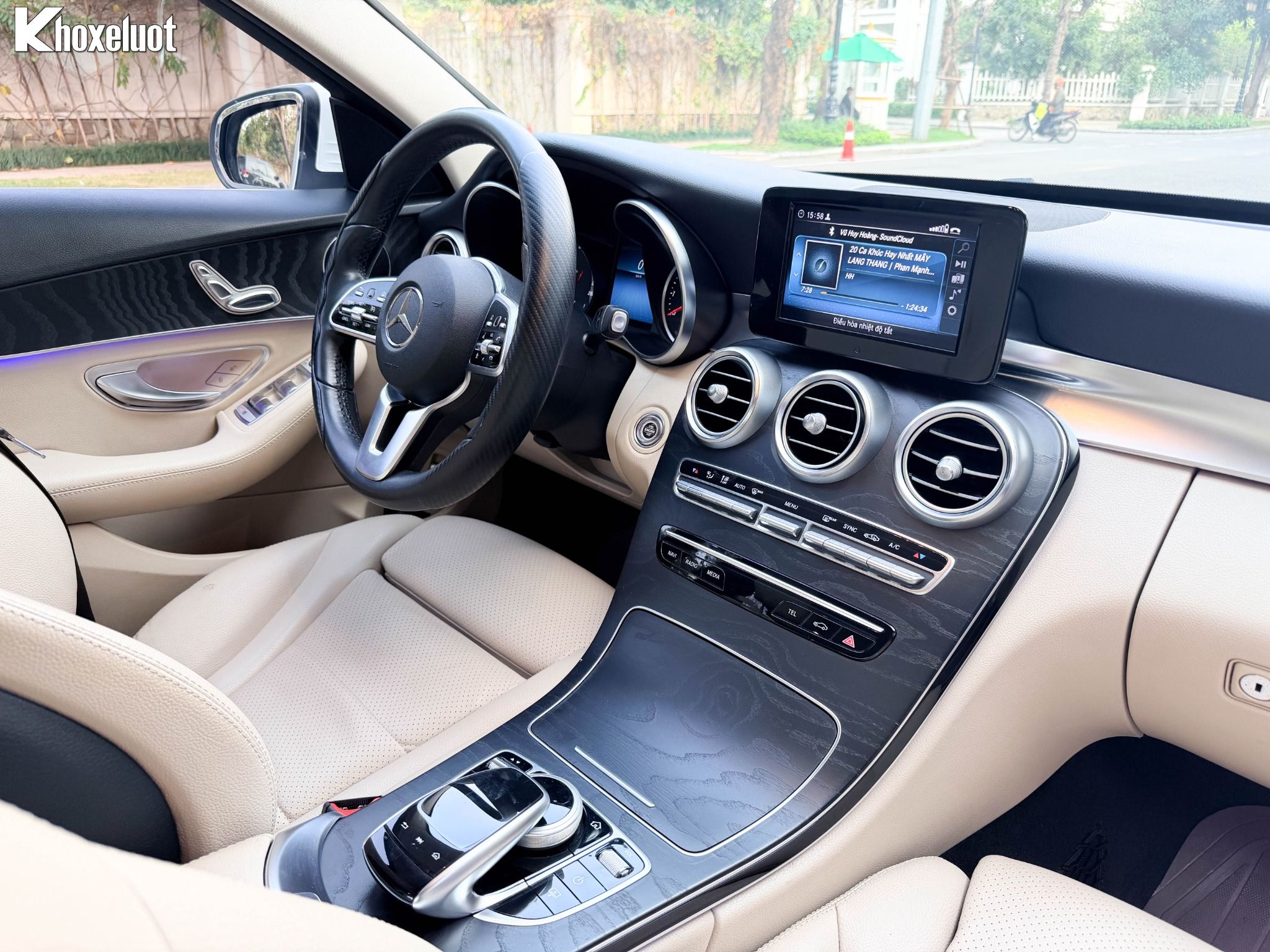 ✨ Nội thất ốp gỗ Open-pore ash màu đen, Vô lăng 3 chấu bọc da tích hợp điều khiển cảm ứng.