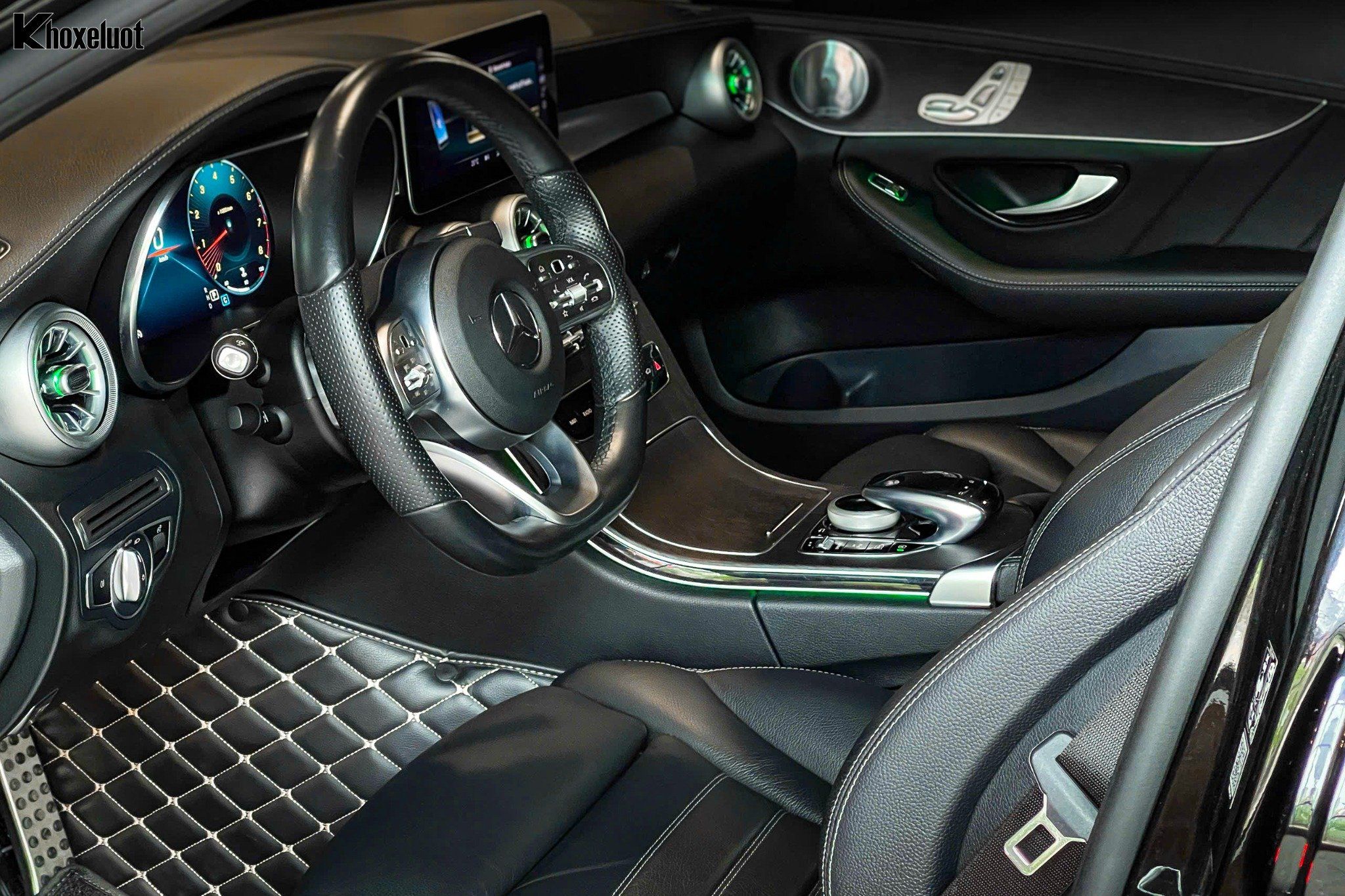 👉 Vô-lăng thể thao đáy phẳng AMG bọc da Nappa, tích hợp lẫy chuyển số.