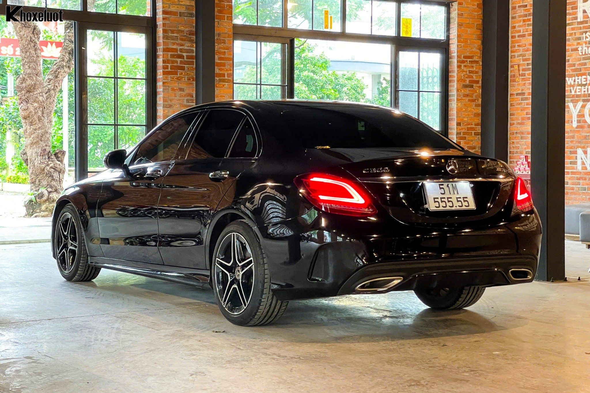 Phần đuôi xe được thiết kế tinh tế với cụm đèn hậu LED đồ họa sắc sảo, tạo hiệu ứng thị giác ấn tượng. Cản sau thể thao AMG tích hợp bộ khuếch tán gió và cặp ống xả kép nhấn mạnh rõ ràng khả năng vận hành mạnh mẽ và phong cách AMG.