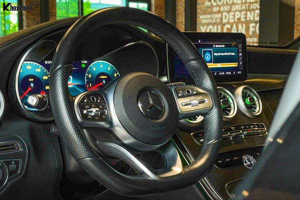 Vô lăng 3 chấu bọc da Nappa, thiết kế đáy phẳng đặc trưng AMG, tích hợp các phím cảm ứng (Touch Control Buttons) và lẫy chuyển số, mang lại cảm giác cầm nắm chắc chắn và trải nghiệm lái thể thao.