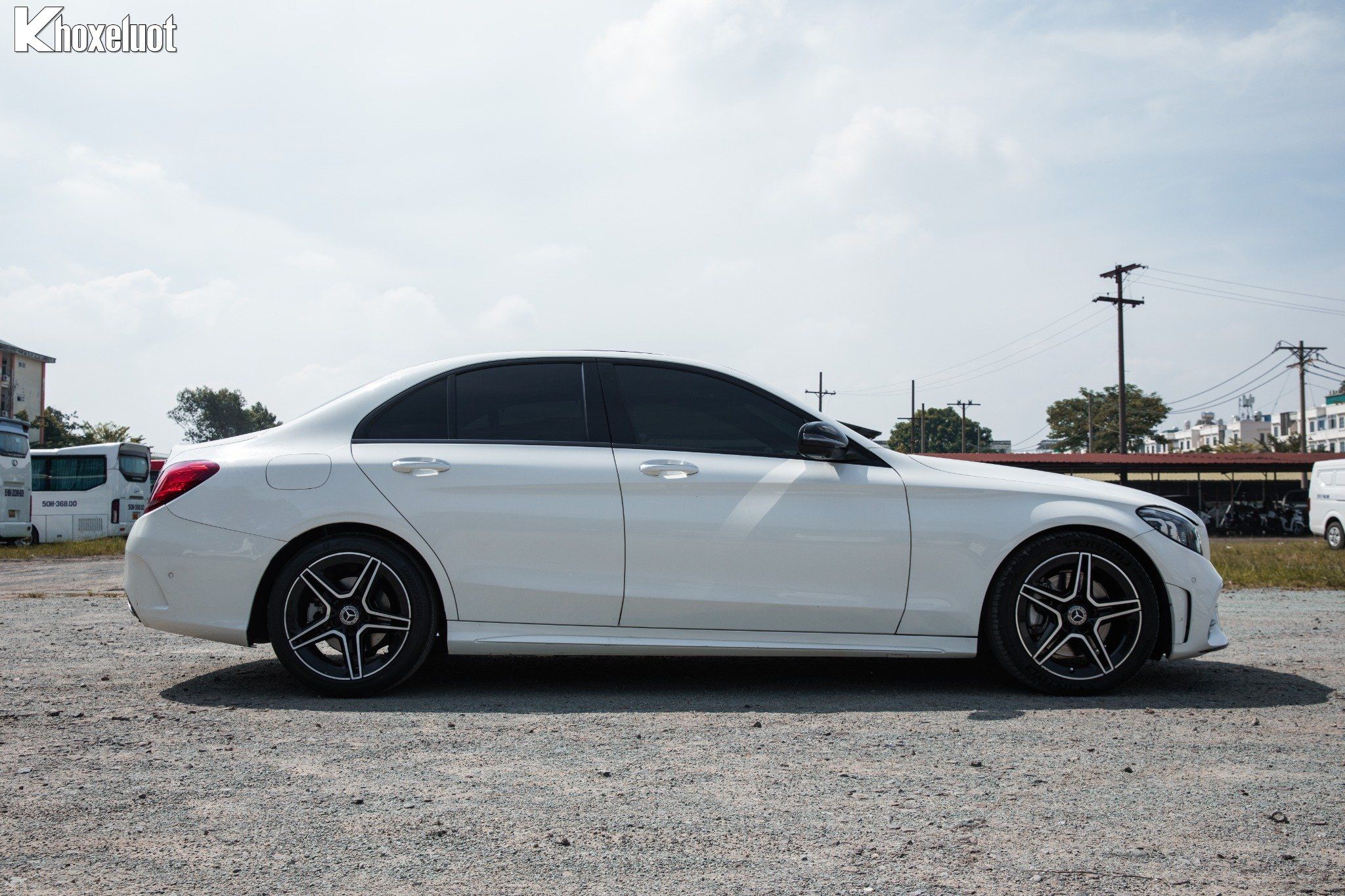 C300 AMG 2022 sở hữu đường nét thân xe mượt mà, kết hợp với các chi tiết ốp sườn AMG thể thao và vòm bánh xe lớn, tạo cảm giác xe mạnh mẽ và năng động.