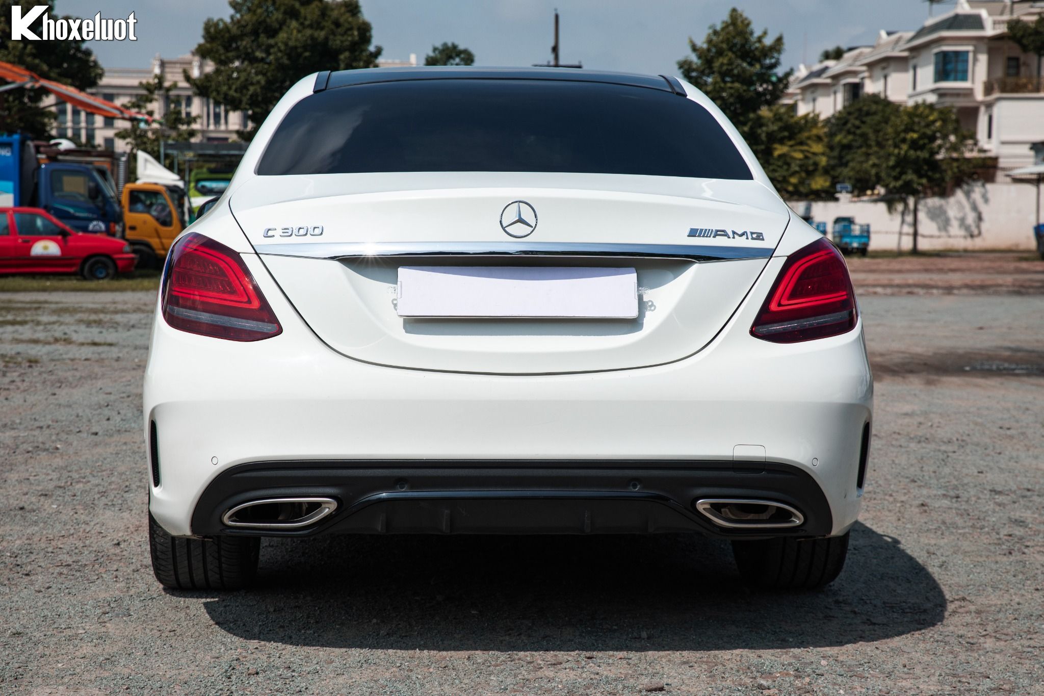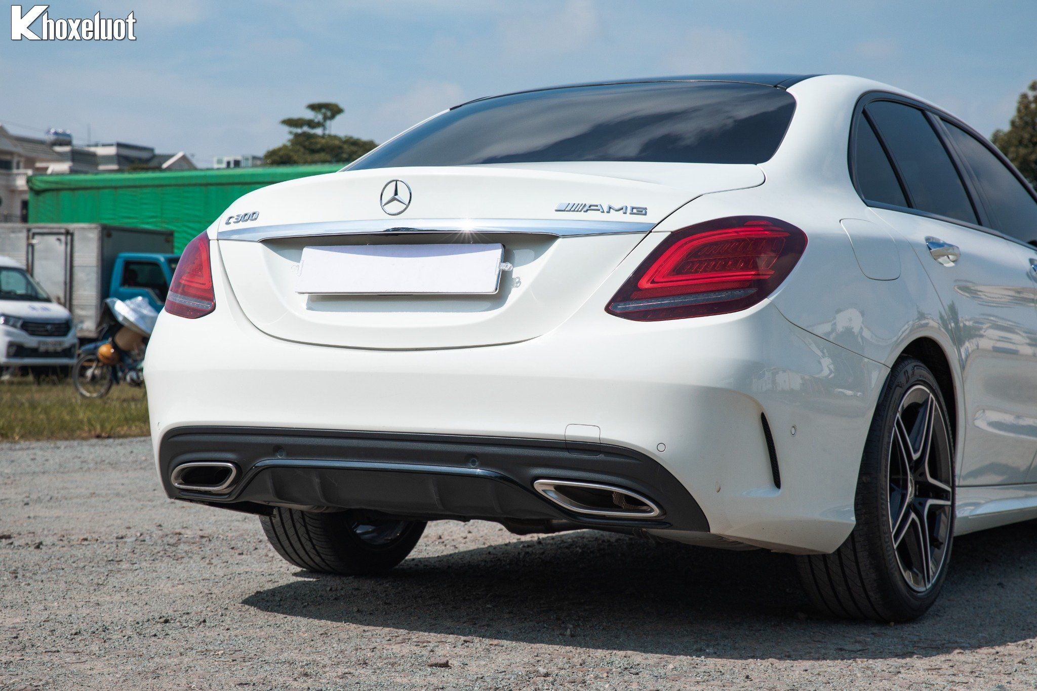 Cụm đèn hậu LED đồ họa sắc nét, kết hợp với cánh lướt gió nhỏ trên cốp sau và cản sau thể thao AMG tích hợp bộ khuếch tán gió.