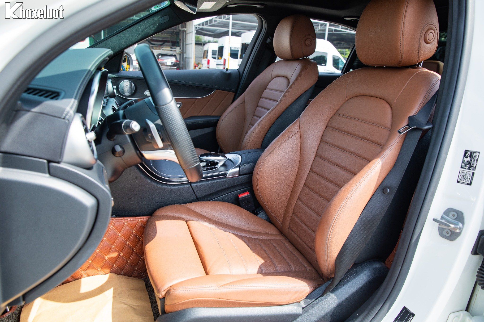 👉 Vô-lăng thể thao đáy phẳng AMG bọc da Nappa, tích hợp lẫy chuyển số.