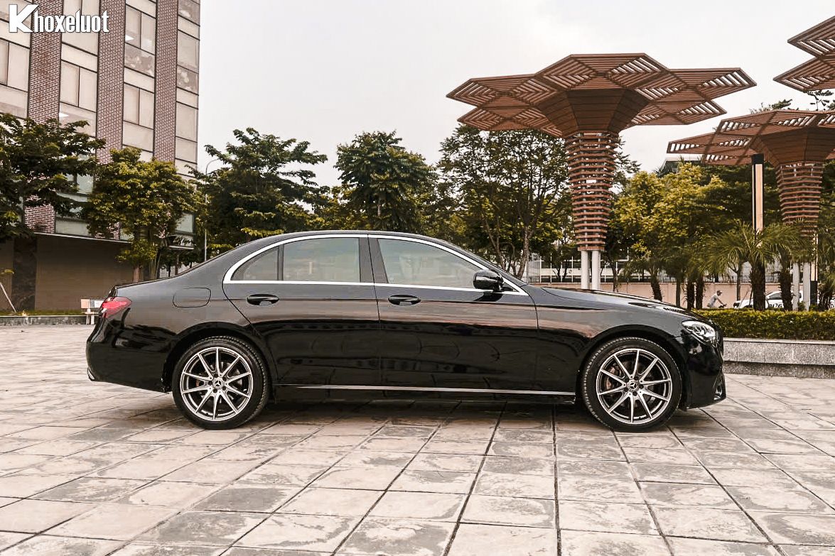 Mercedes-Benz E180 2022 sở hữu đường nét thân xe mềm mại, uyển chuyển với những đường gân dập nổi nhẹ nhàng, tạo cảm giác xe dài và mượt mà. Viền cửa sổ mạ chrome sáng bóng, tăng thêm vẻ sang trọng và cao cấp.