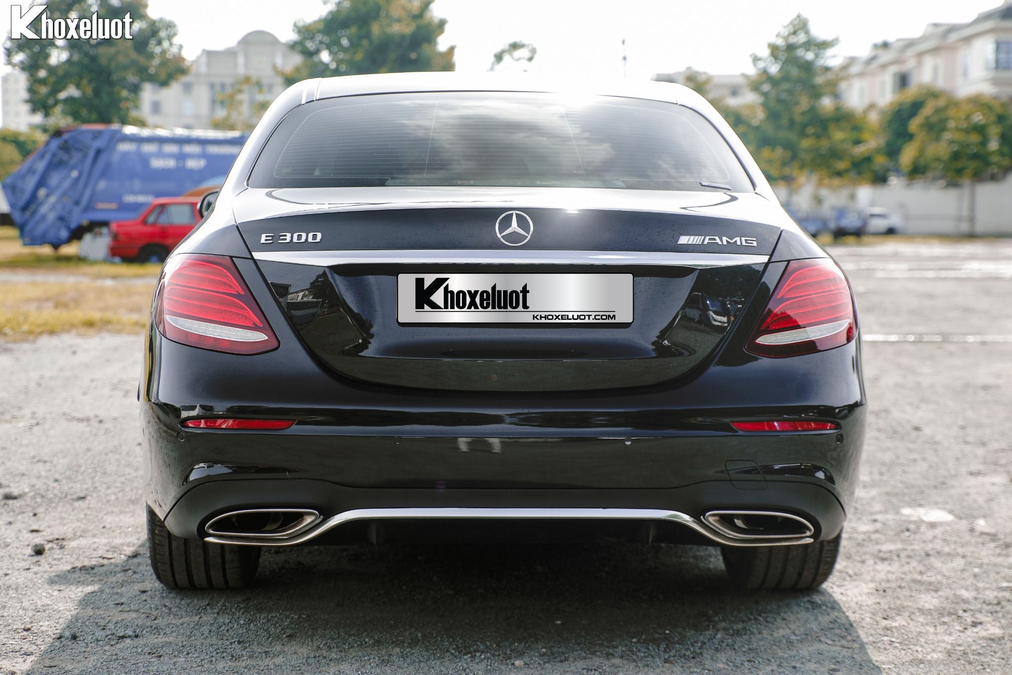Phần đuôi xe được thiết kế tinh tế với cụm đèn hậu LED đồ họa sắc sảo hình ngôi sao pha lê, tạo hiệu ứng thị giác ấn tượng vào ban đêm. Cản sau thể thao AMG tích hợp bộ khuếch tán gió và cặp ống xả kép thật, nhấn mạnh rõ ràng khả năng vận hành mạnh mẽ và phong cách AMG.