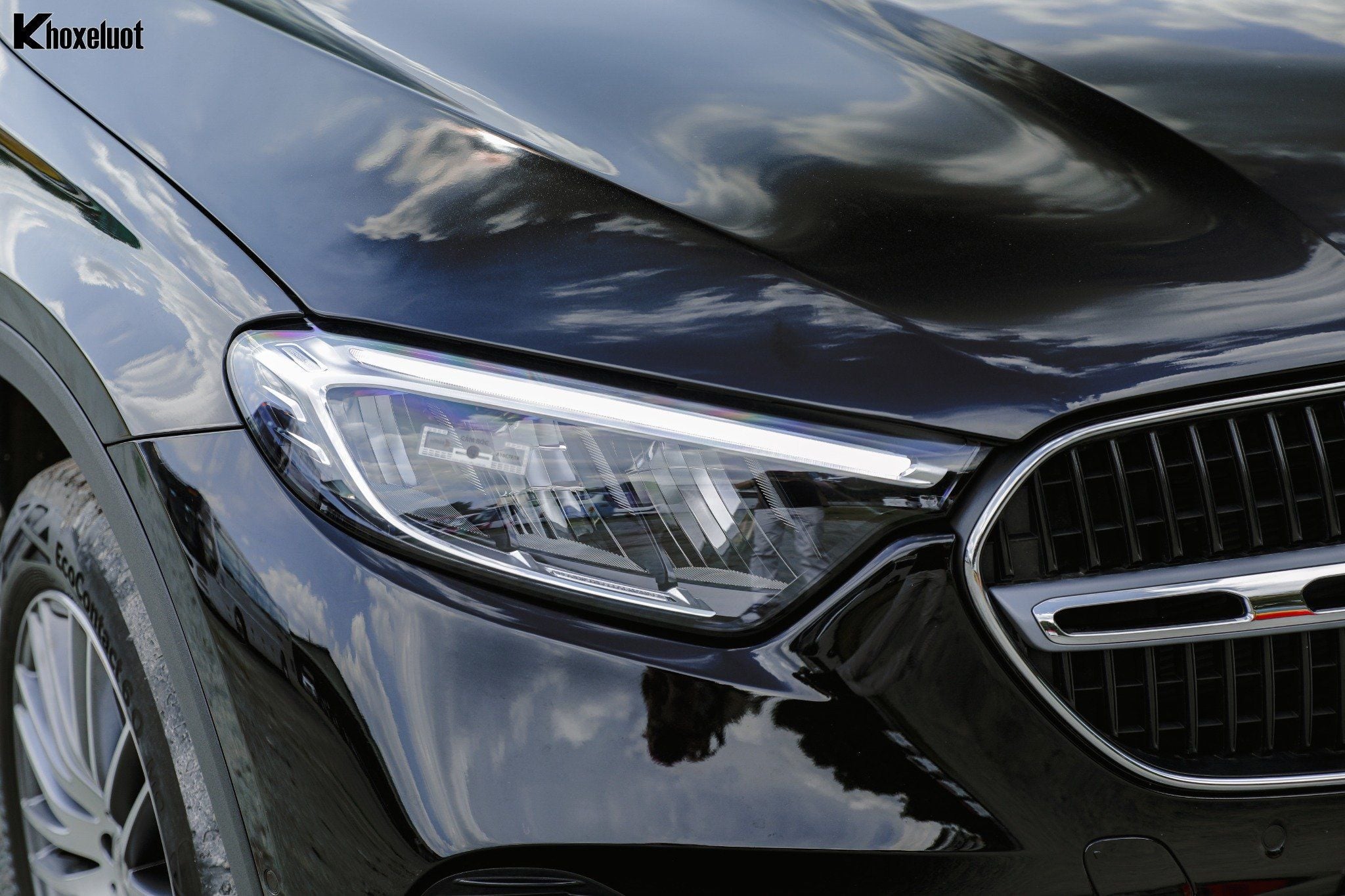 Chiếc xe sở hữu một hình dáng tổng thể cân đối, với phần đầu xe uy lực, thân xe mềm mại và đuôi xe hiện đại, tạo nên một tổng thể hài hòa và sang trọng. Mặt ca-lăng với họa tiết ngôi sao ba cánh đặc trưng, kết hợp logo Mercedes-Benz ở trung tâm, tạo vẻ uy lực và nhận diện thương hiệu rõ nét. Cụm đèn pha Full-LED High Performance sắc sảo, tích hợp dải đèn LED định vị ban ngày tinh tế.