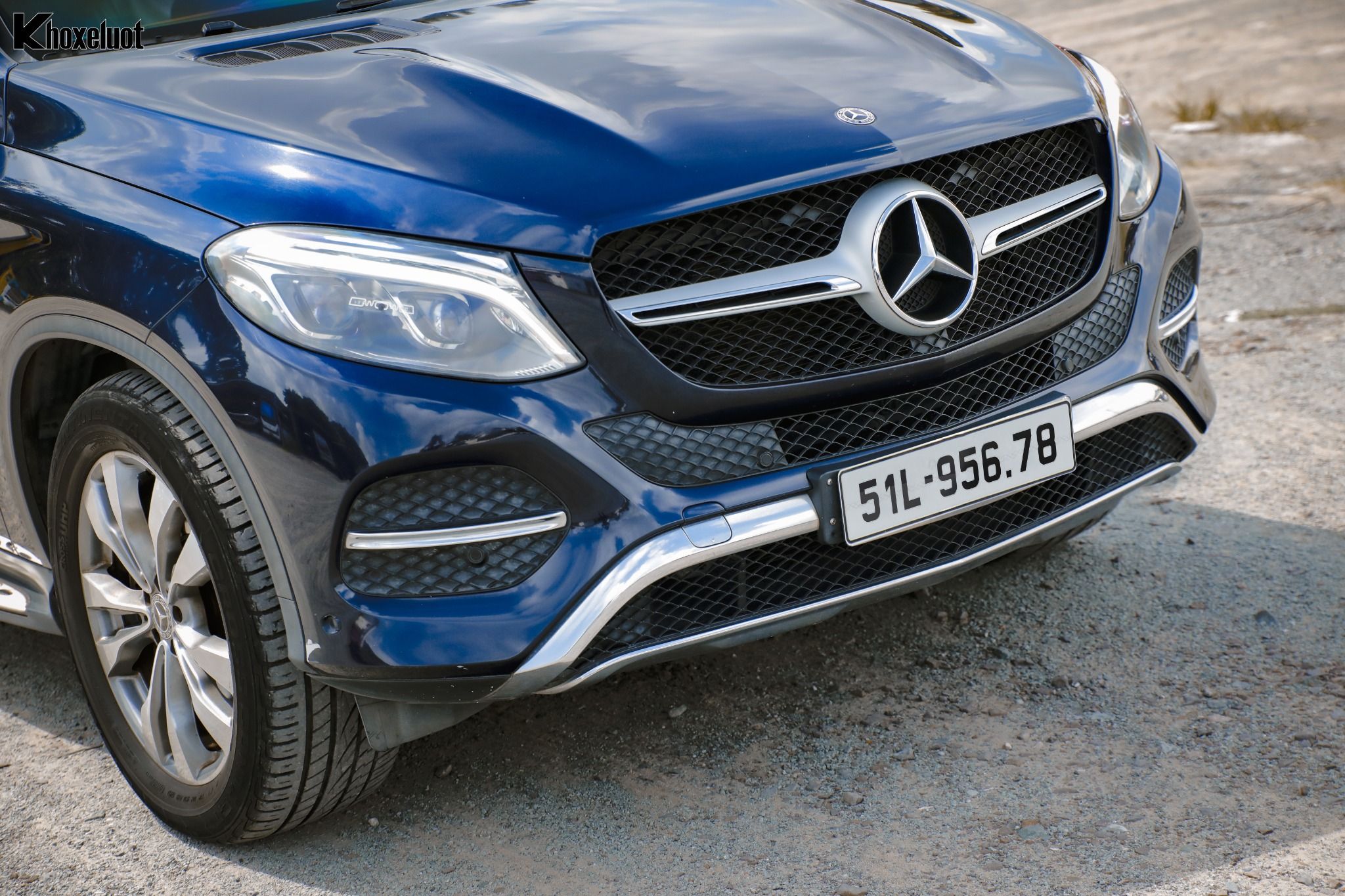 ✨ Đầu xe nổi bật với 2 thanh mạ Crom to bản đặt ngang và chính giữa là logo Mercedes hầm hố.
