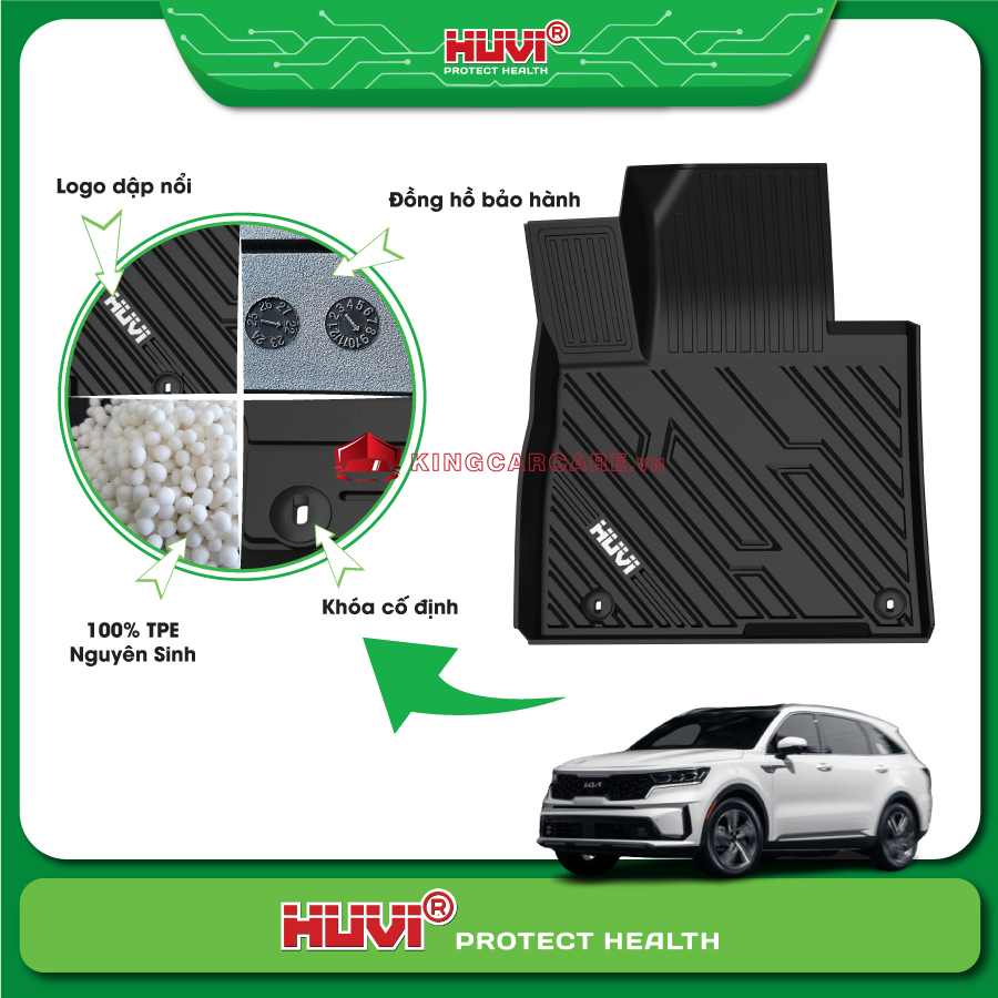 Thảm lót sàn ô tô Kia Sorento nhà Thái Công Auto Care là một trong những đơn vị tiên phong trong lĩnh vực cung cấp thảm lót ô tô. Cùng điểm qua 5 ưu điểm vượt trội của thảm lót nhà Huvi nhé: