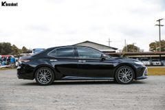 Camry 2.0Q 2022 sở hữu dáng vẻ trường xe và thấp hơn đáng kể, mang đậm phong cách coupe 4 cửa. Những đường gân dập nổi chạy dọc thân xe kết hợp cùng viền cửa sổ mạ chrome sáng bóng, tạo nên sự thanh lịch và khí động học. Gương chiếu hậu tích hợp đèn báo rẽ và các tính năng hỗ trợ an toàn.