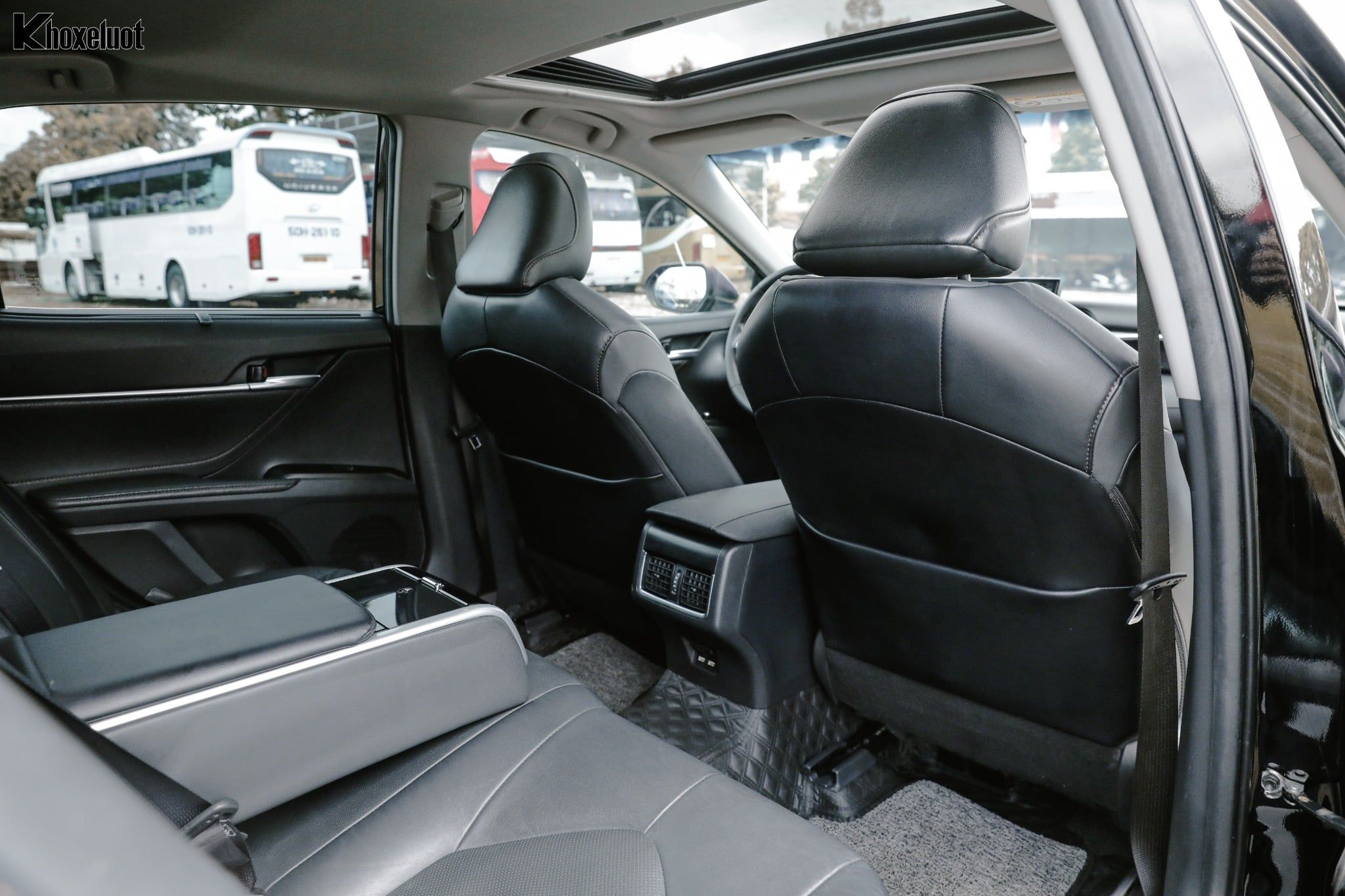 Hàng ghế sau của Camry 2.0Q rất rộng rãi, thoải mái cho ba người lớn, với khoảng để chân lý tưởng. Phiên bản này thường được trang bị rèm che nắng chỉnh điện ở kính sau và rèm cửa sổ chỉnh cơ, cùng bệ tì tay trung tâm tích hợp bảng điều khiển đa chức năng(điều hòa, âm lượng, rèm che nắng, mang lại sự riêng tư và tiện nghi tối đa cho hành khách VIP.