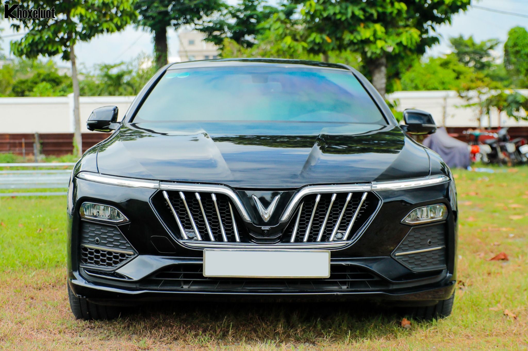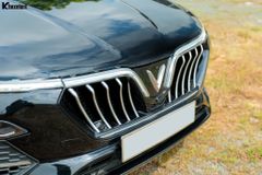 Phần đầu xe nổi bật với lưới tản nhiệt cỡ lớn, kết hợp cùng dải đèn LED định vị ban ngày hình chữ "V" đặc trưng của VinFast, kéo dài từ logo trung tâm. Chi tiết này không chỉ tạo hiệu ứng thị giác mạnh mẽ mà còn tượng trưng cho chữ "V" của Việt Nam, VinFast và Victory. Cụm đèn pha Full LED được đặt thấp hơn, tích hợp công nghệ chiếu sáng hiện đại, đảm bảo tầm nhìn tối ưu.