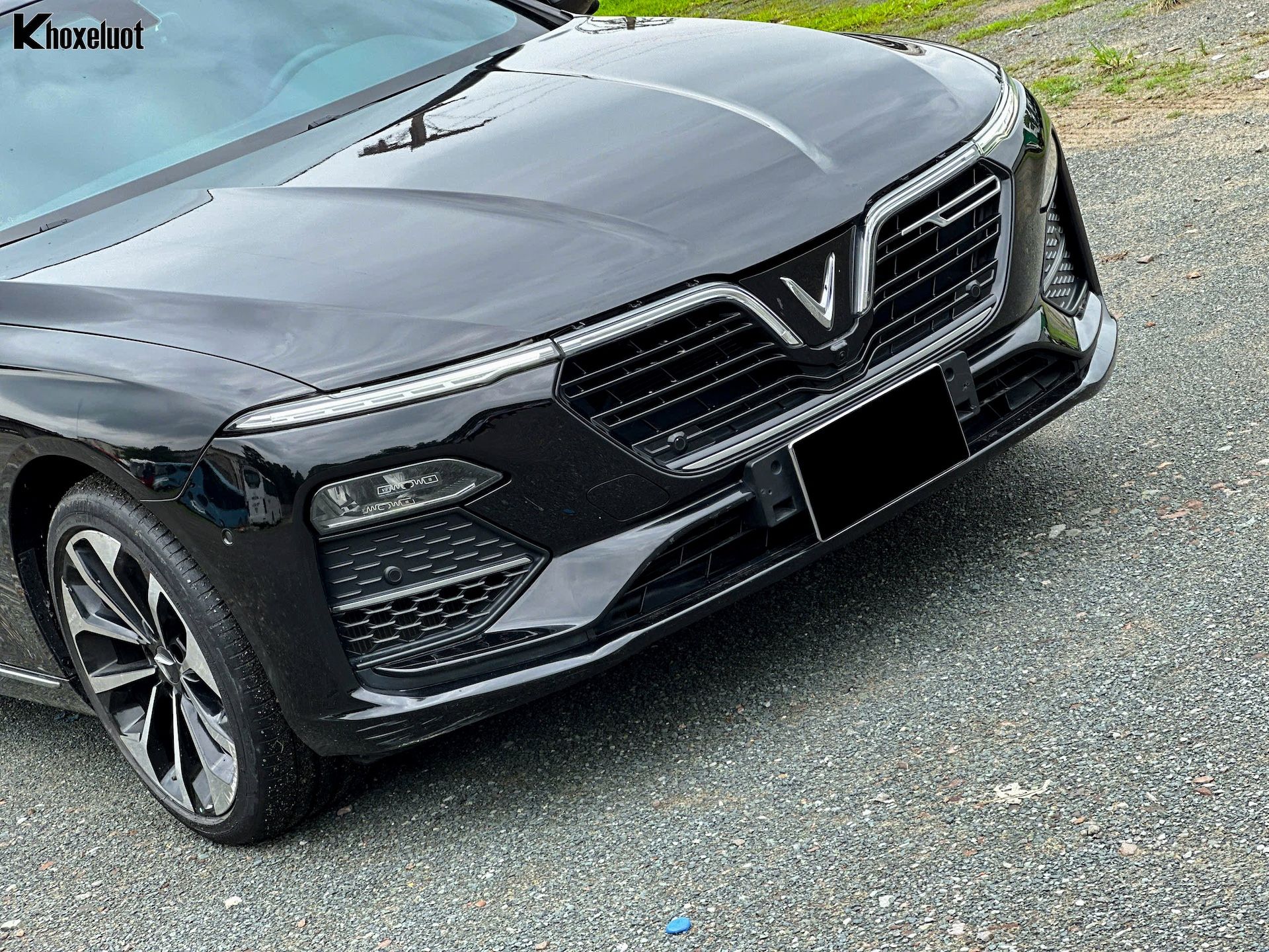Điểm nhấn đặc trưng và dễ nhận biết nhất là dải đèn LED chạy ban ngày hình chữ "V" lớn, kéo dài từ logo trung tâm ra hai bên, tạo hiệu ứng thị giác mạnh mẽ và độc đáo. Cụm đèn pha LED chính được đặt thấp hơn, tích hợp công nghệ chiếu sáng hiện đại.