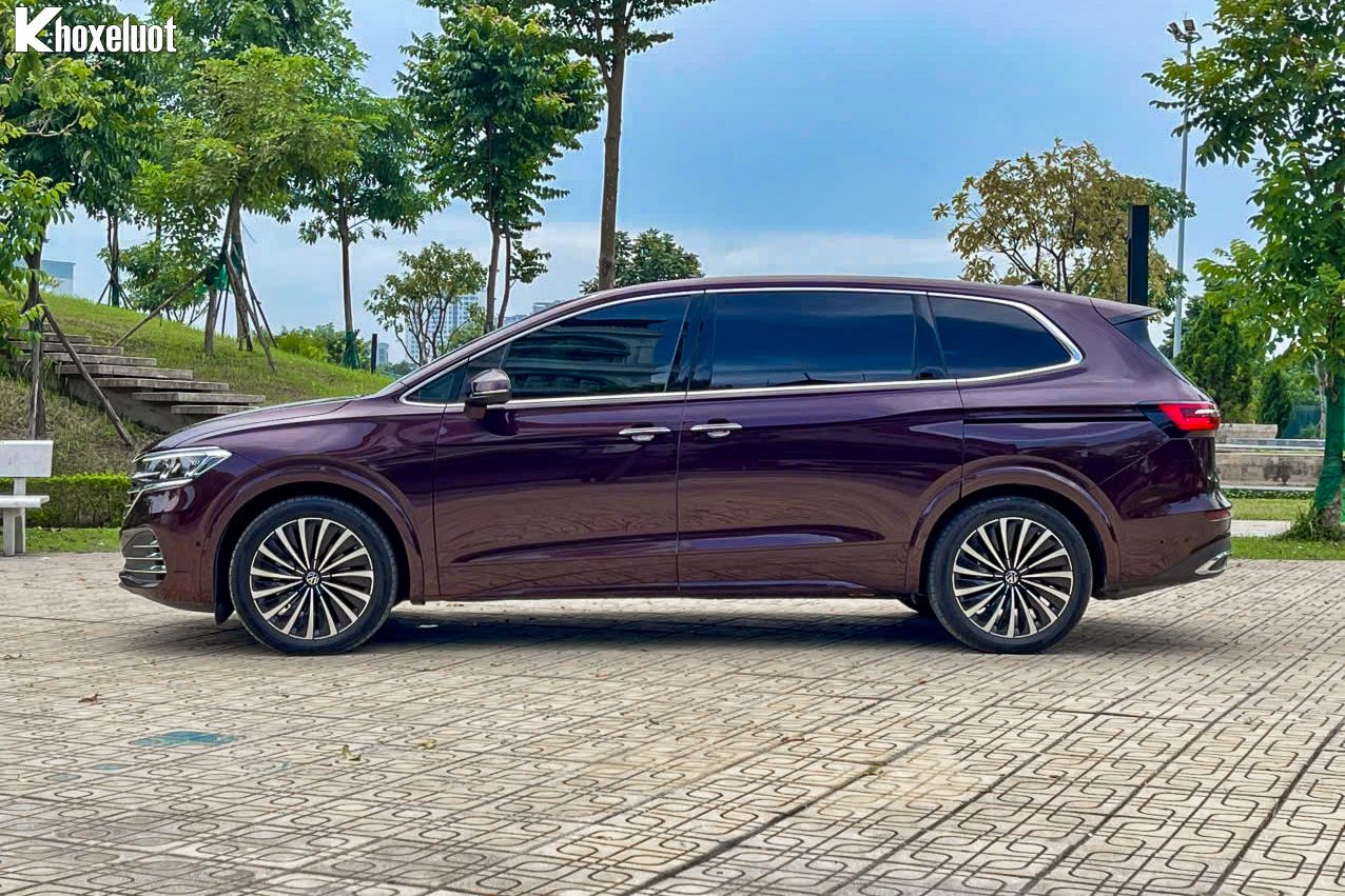 Thân xe Volkswagen Viloran Luxury 2024 có đường nét mềm mại nhưng không kém phần vững chãi. Volkswagen Viloran Luxury 2024 được trang bị bộ mâm hợp kim 19 inch thiết kế thể thao, góp phần tạo nên vẻ ngoài mạnh mẽ và đầy phong cách. Mâm xe kết hợp với hệ thống khung gầm chắc chắn giúp chiếc MPV này không chỉ đẹp mắt mà còn mang lại sự ổn định khi vận hành.