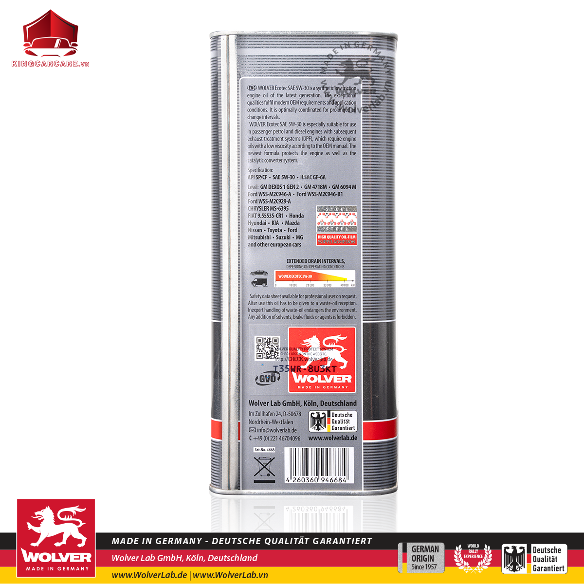 Tương thích | Sản phẩm hoàn toàn tương thích với các loại dầu nhớt tương tự, có thể trộn lẫn khi cần thiết. Tuy nhiên, nên thay lại WOLVER Ecotec SAE 5W-30 để dầu hoạt động tối ưu nhất. | |